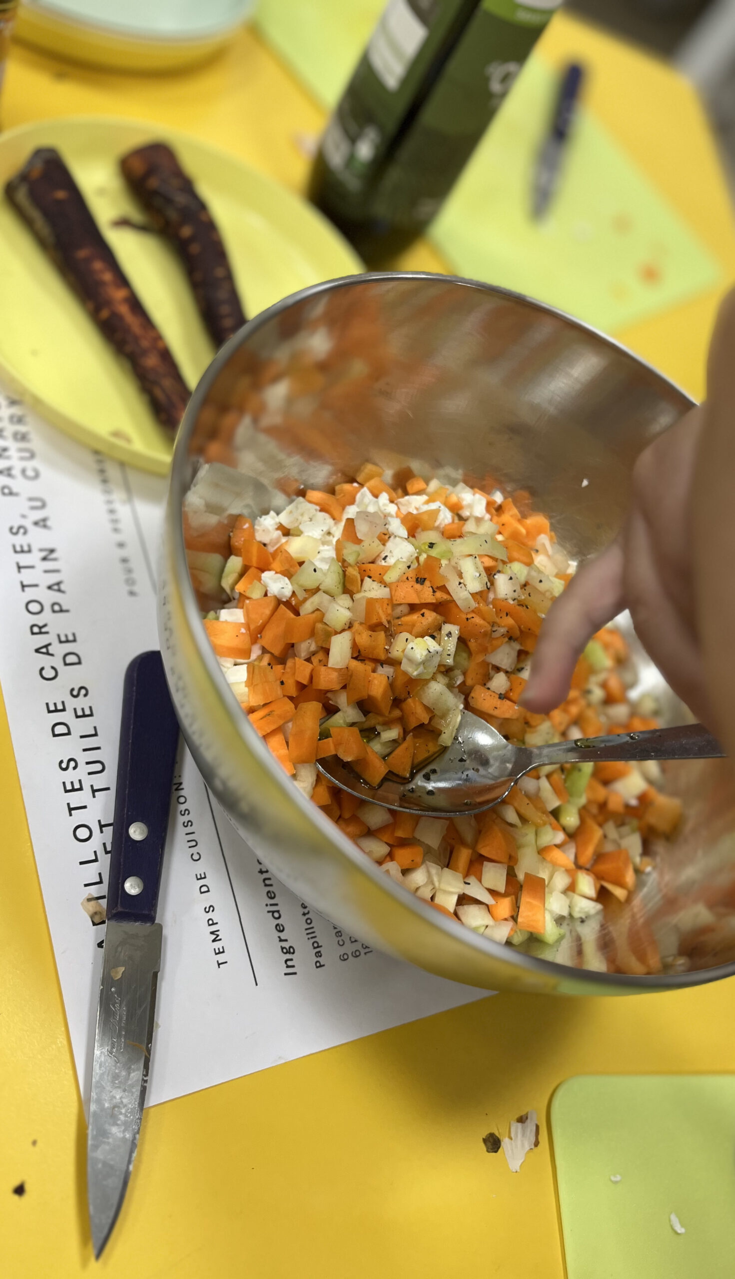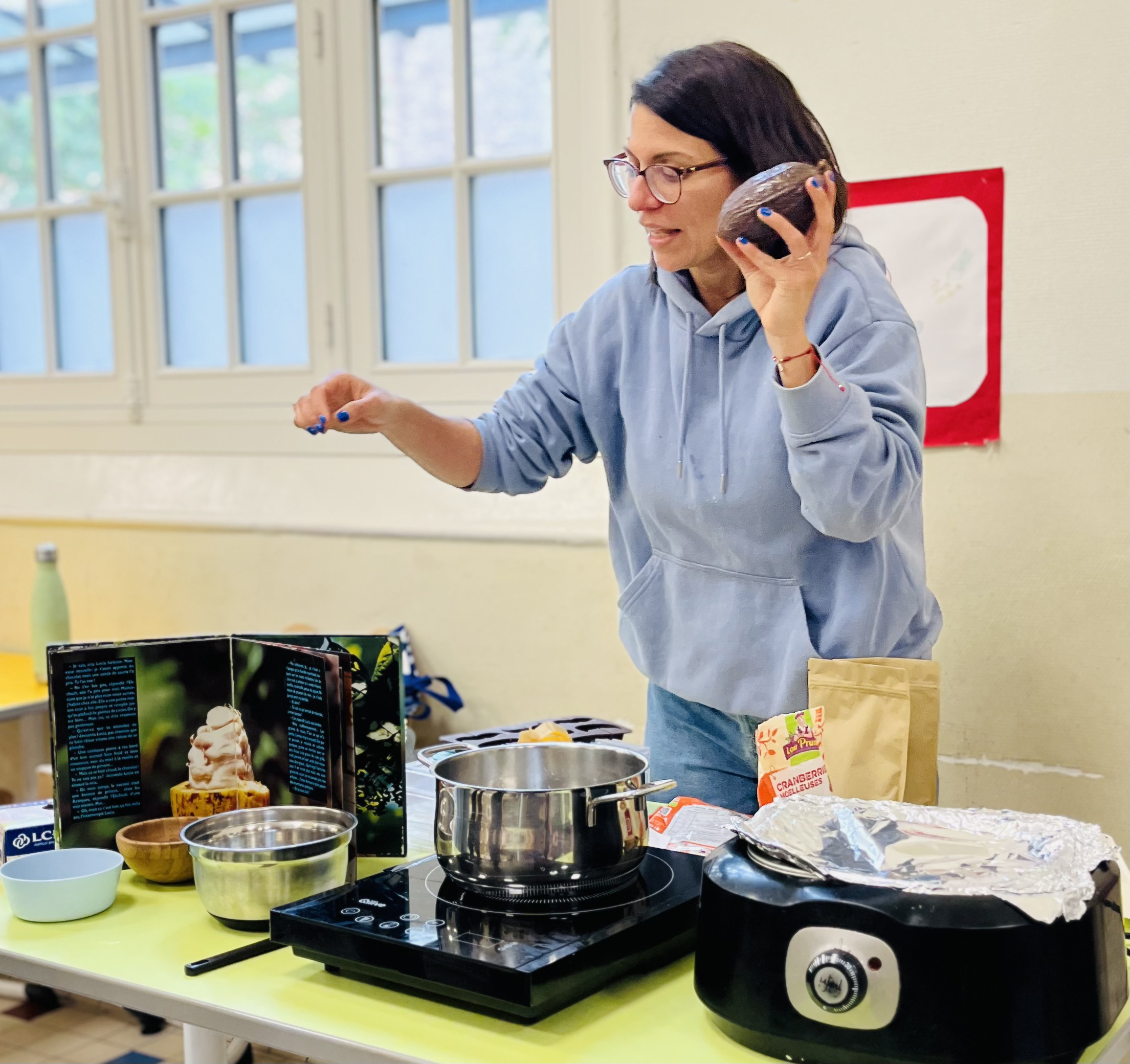 Les ateliers de cuisine sont animés chaque semaine par la cheffe Elodie Hué, cheffe engagée pour le manger sain, de saison et local quand possible et anti-gaspillage.